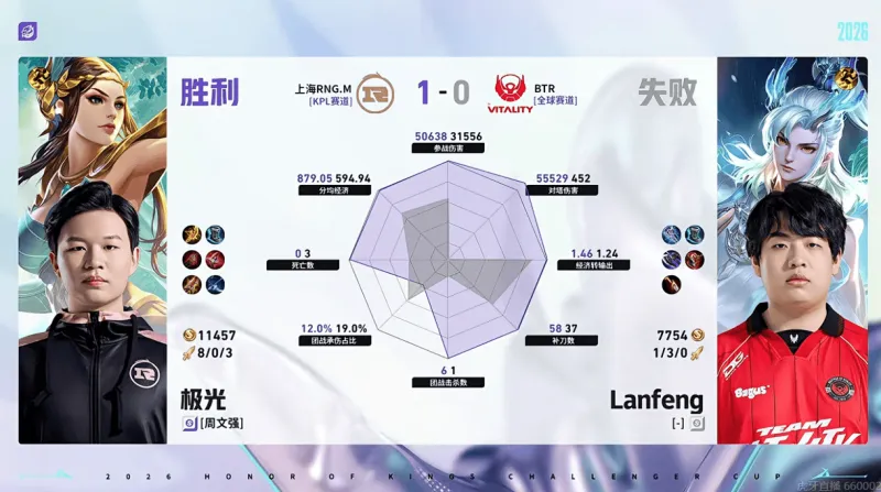 华体会官方网站-RNG/BTR第一局数据对比:樱花/航航对位全包围